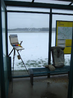 Great to find a bit of shelter! I don’t go out if it is under 50 degrees F. Applause to you. Lovely painting, too.